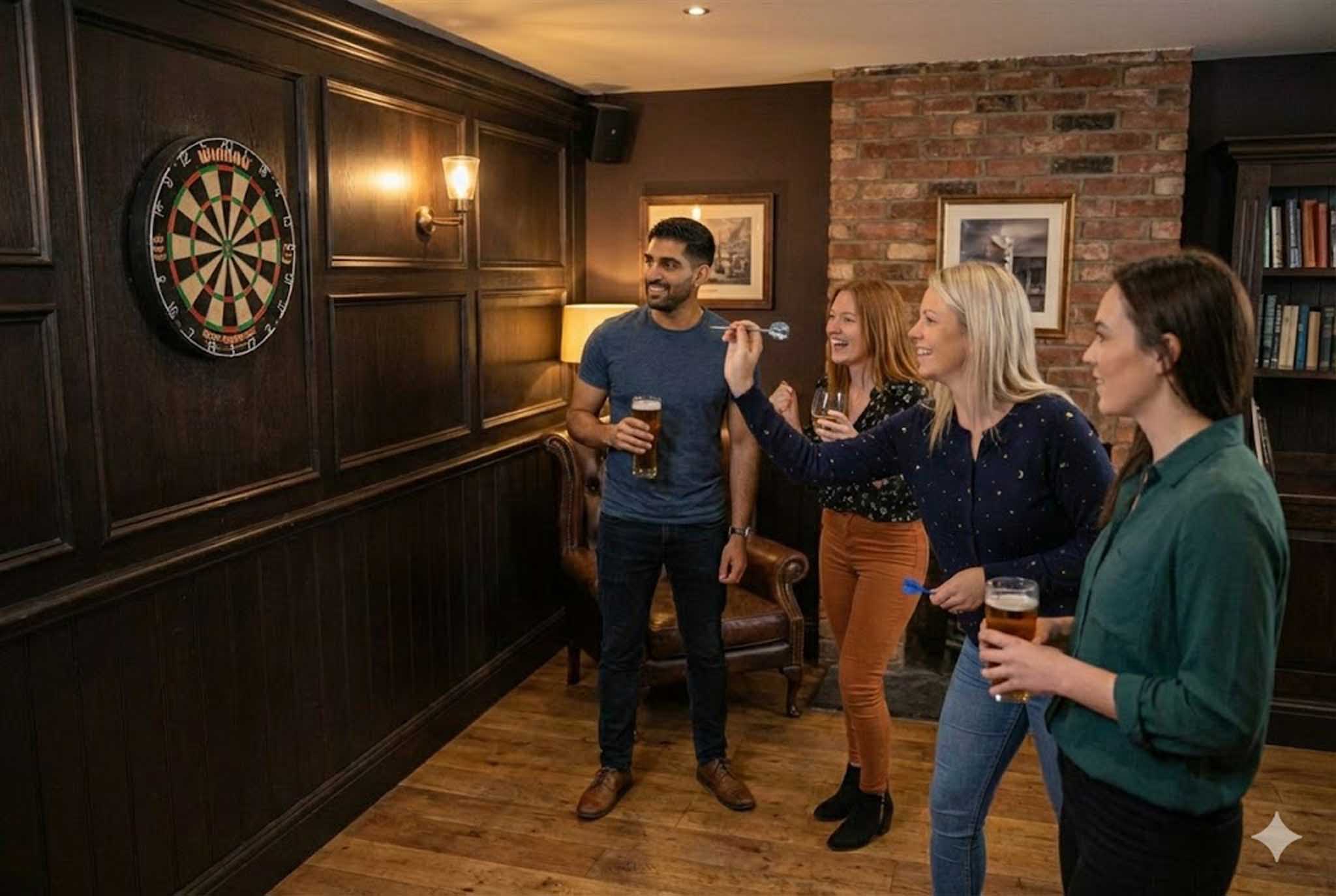 Vi legger til rette for aktiviteter som passer naturlig inn i afterworken, uten at det føles organisert eller påtvunget. Quiz kan samle kollegaer rundt bordene, dart gir litt vennskapelig konkurranse, og live musikk eller DJ-sett setter stemningen når kvelden sklir over i noe mer sosialt.